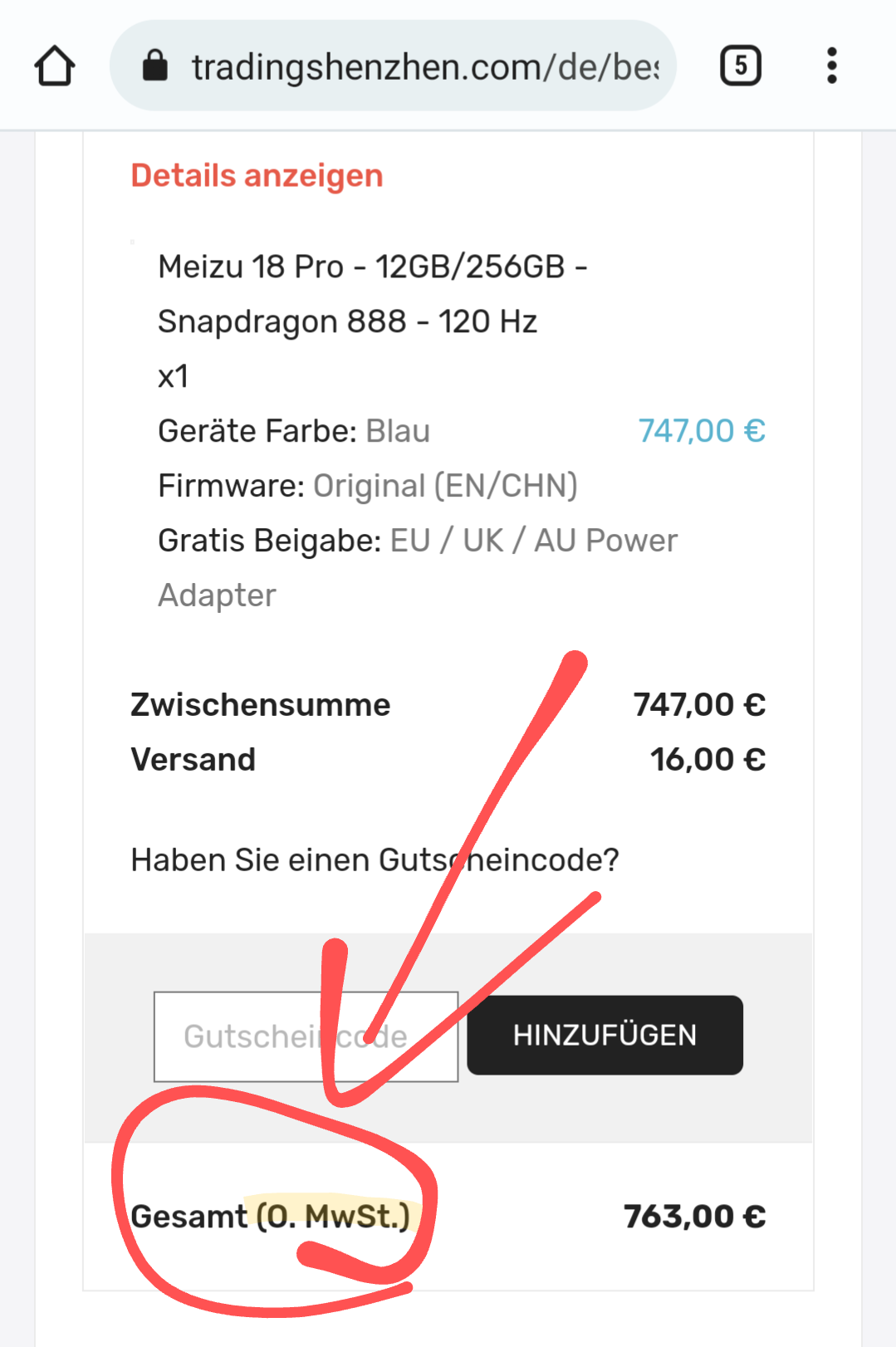 Also hier steht eindeutig ohne Mehrwertsteuer ;-) In Anbetracht des dürftigen Impressum und der fehlenden Umsatzsteuer-Identifikationsnummer ist das auch so zu erwarten.Dann wird halt rumgeheult wenn es Post vom Zoll gibt.Christian1297 schrieb:Also hier steht eindeutig ohne Mehrwertsteuer ;-)