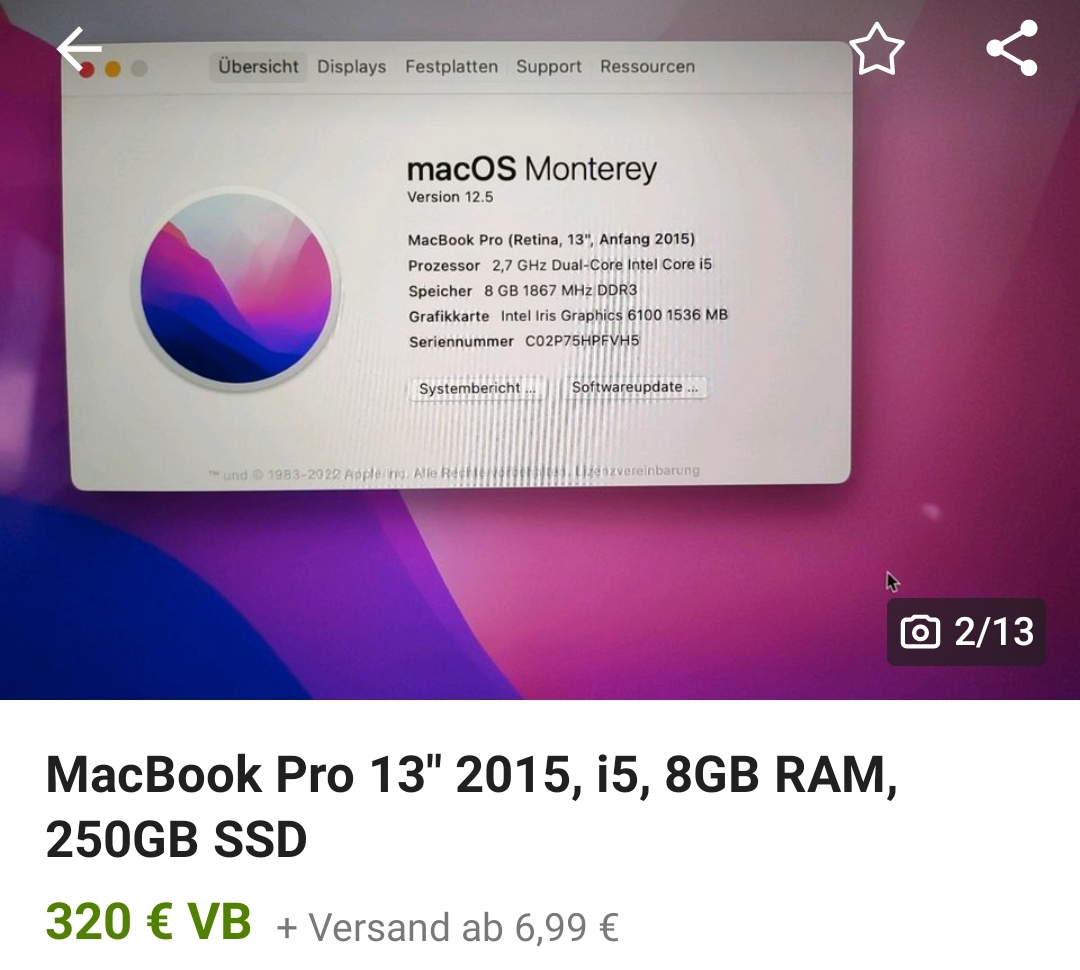 Jetzt habe ich überlegt ein gebrauchtes, womöglich auch teildefektes MacBook zu kaufen.