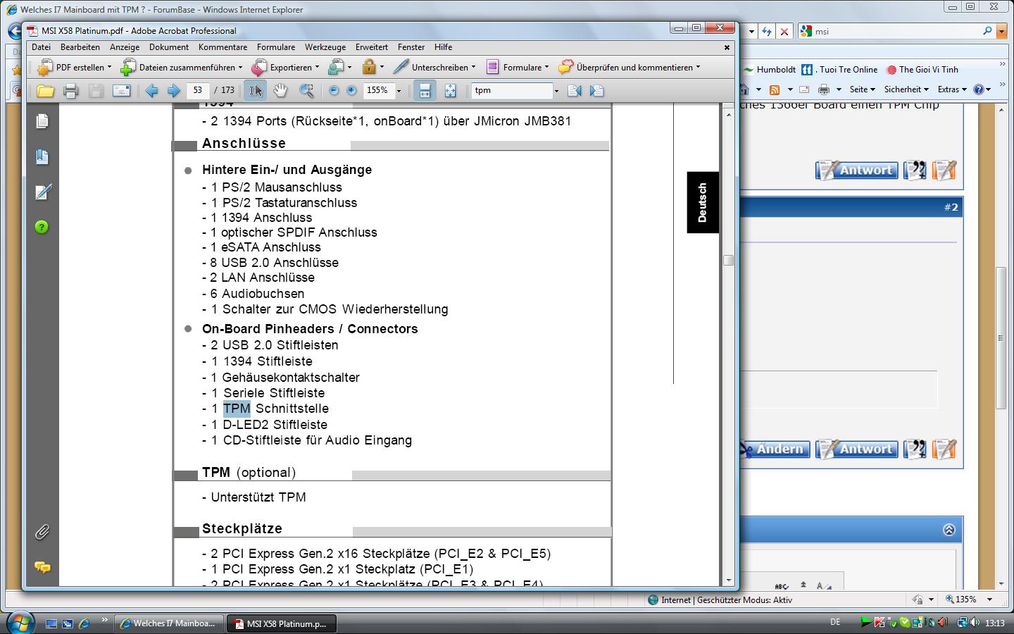 Bei beiden finde ich aber keine definitiven Aussagen, ob diese Boards nun über einen TPM Chip verfügen oder nicht. Ich möchte wegen Bitlocker zwingend ein Board mit TPM.