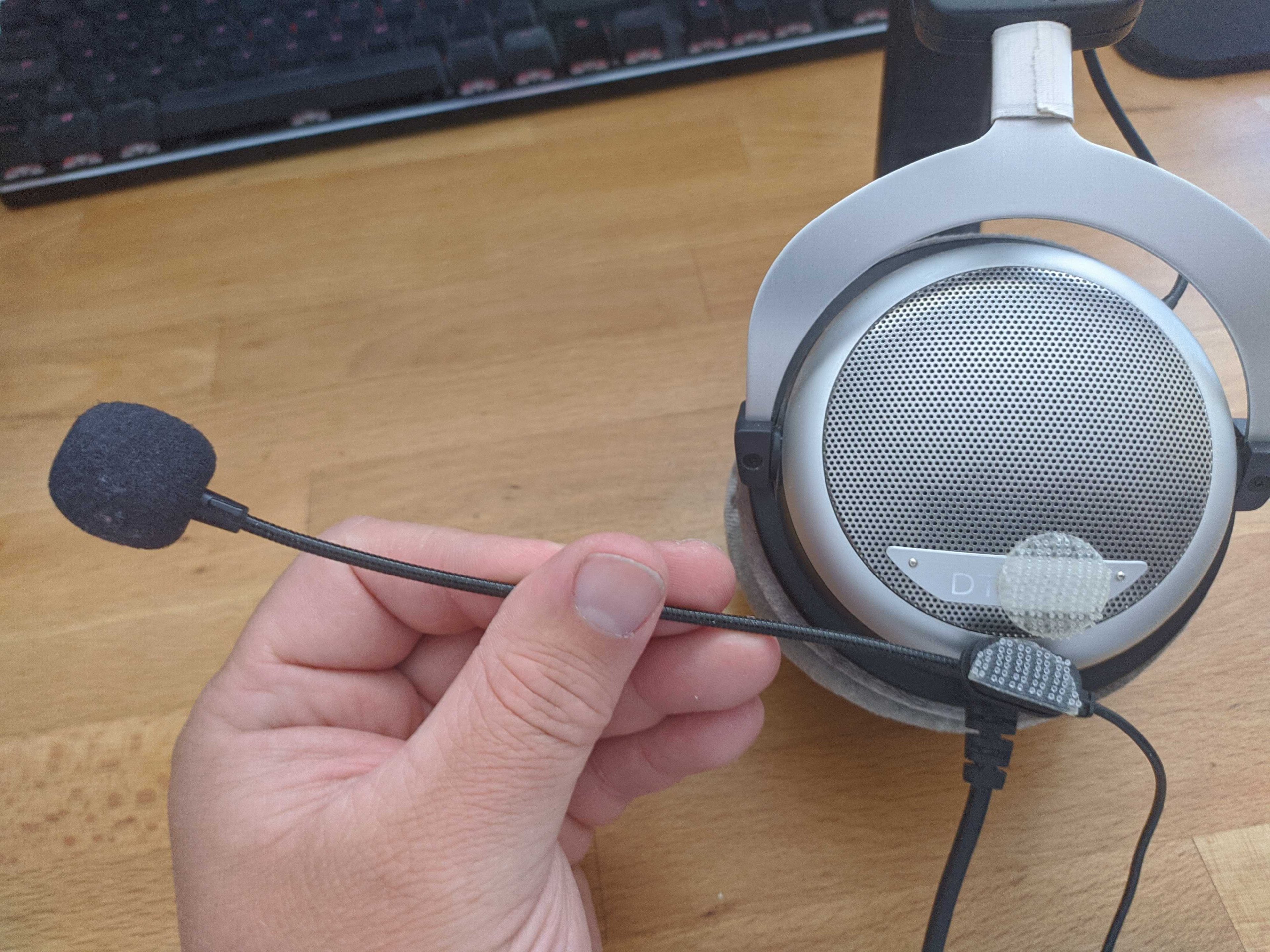 Hier mal Bilder von meinem DT 880. Habe mehrere Kopfhörer, an denen ich das Mikro so festgemacht habe.