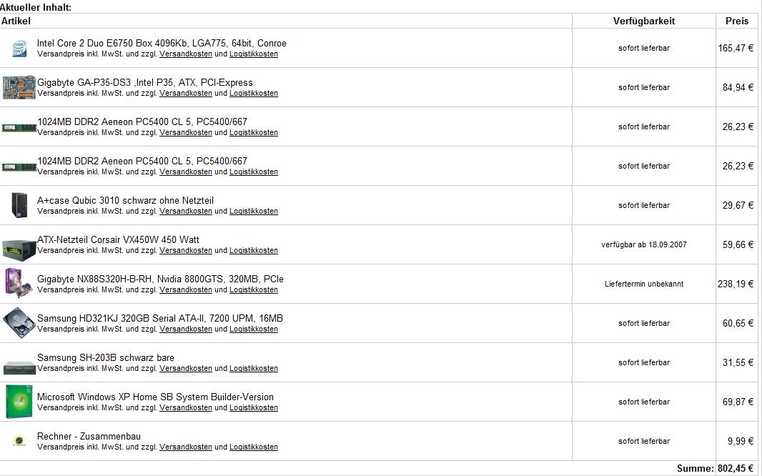Im Anhang hab ich mal so ein "kleinen" PC zusammengestellt (+WinXP), wird dann auch direkt von hardwareversand zusammengebaut.