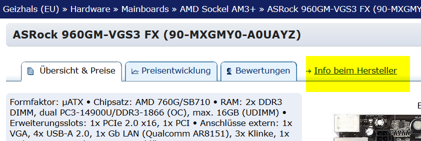 Vorweg ich habe fast keine Ahnung wenn es um Hardware geht, aus diesem Grund frage ich hier mal nach. Undzwar geht es darum das ich mir einen Pc gekauft habe. Leider ist nun das Motherboard hin und wollte genau das gleiche kaufen (Asrock 960GM-VGS3 FX AM3+), leider finde ich keinen für einen günstigen Preis und vielleicht gibt es ja ein besseres für die Preisklasse.