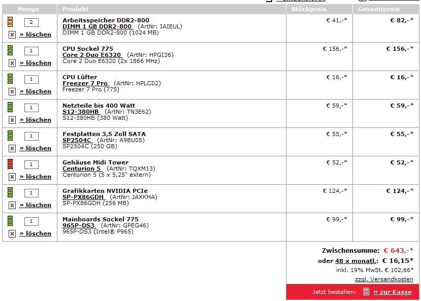 Also wären so fast 300€ für diese Komponenten.