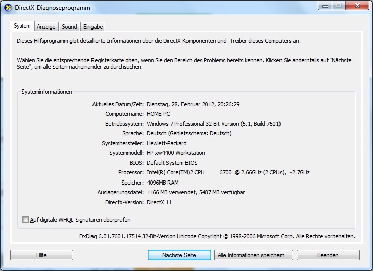 Und noch ne Frage, würde eigentlich in ein anderes Thema gehören, bezieht sich aber auch auf die neu erworbene HP-WS.
