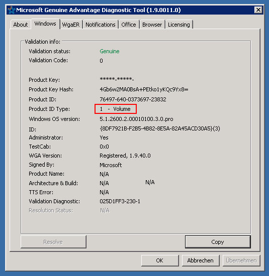 wie finde ich denn bei einer laufenden Windows XP Installation heraus, welche Version installiert ist. Schließlich gibt es für Home/Professional jeweils noch die "Geschmacksrichtungen" OEM, Retail oder gar Corporate ...