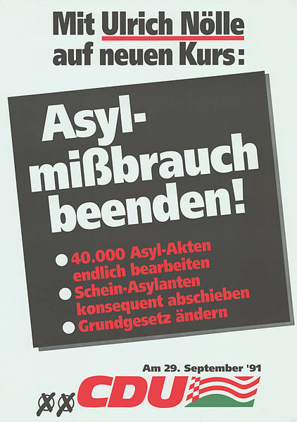 Ist es nicht eher die AfD welche die CDU der 80/90er Jahre kopiert ? Kennst du das angehängte CDU Wahlplakat aus dem Jahr 1991 ?SE. schrieb:Die CDU fällt leider vor allem dadurch auf die Sprache der AFD zu imitieren in der Hoffnung irgendwie Wähler anzusprechen. Ich finds befremdlich und wirklich erschreckend.