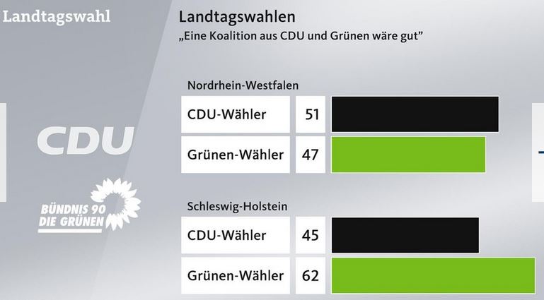 Du bist aus Deiner persönlichen Abneigung gegen die Grünen natürlich zu voreingenommen um die tatsächliche "Wetterlage" zu einer Koalition zwischen CDU und Grünen auch unter den CDU Wählern zu berücksichtigen. Ein wesentlicher Teil der CDU Wähler sieht eine Koalition mit den Grünen weniger kritisch, präferiert diese sogar. Eine Brandmauer zu den Grünen wäre wie gesagt politischer Selbstmord, aber von mir aus gerne. Ein Beispel der letzten Landtagswahlen aus 2022.