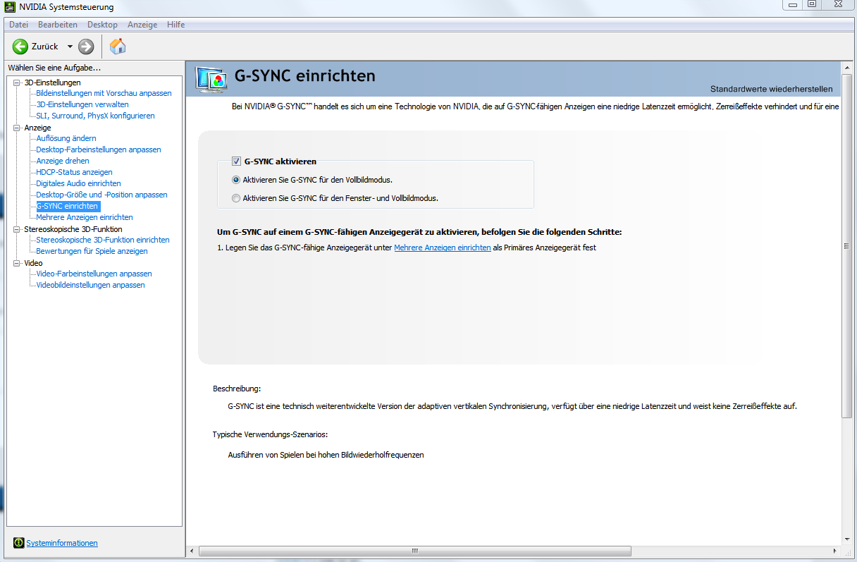 -G-Sync deaktiviert (behebt die niedrige FPS, aber wegen G-Sync habe ich mir ja den Monitor gekauft...)