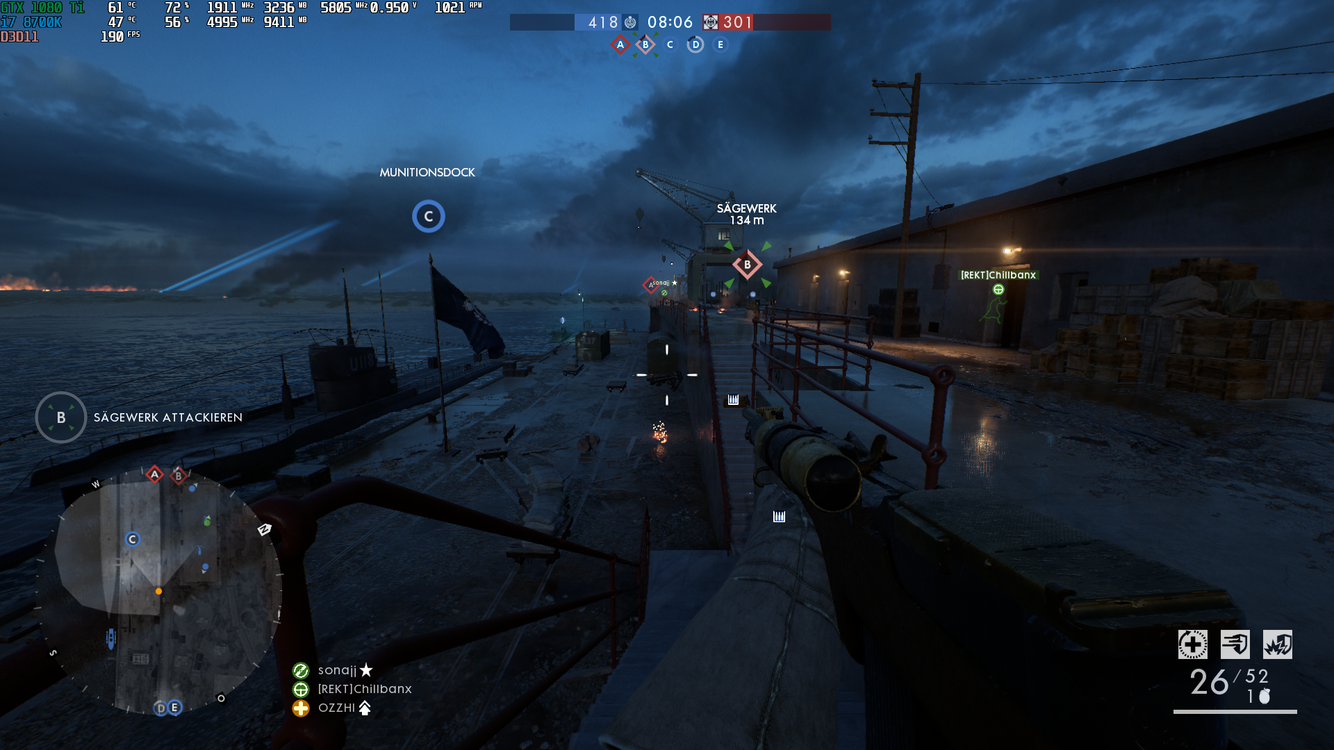 Habe mal auf der selben Map ein kurzes Video gemacht, welches die Performance bis auf die Aussreisser (Ruckler) gut darstellt. Mein Aim hingegen ist nach einem Monat Abstinenz und falscher Auflösung (1080p) ziemlich daneben.