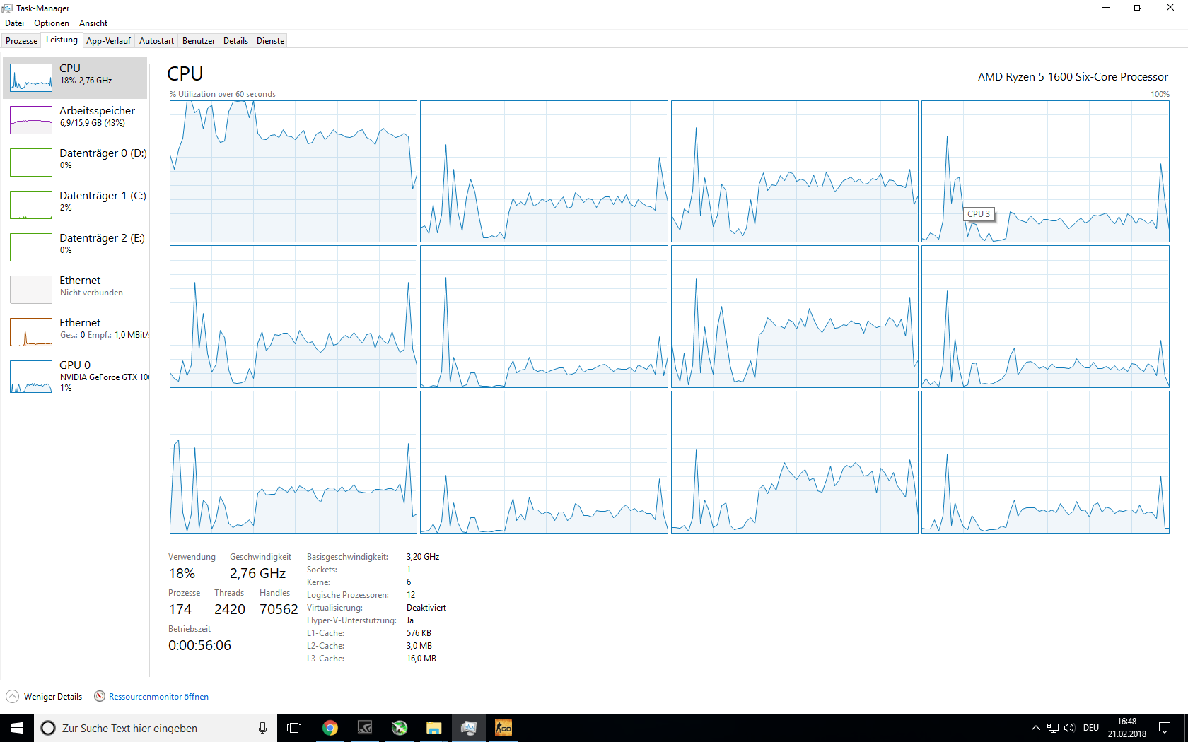 Laut MSI Afterburner ist die Grafikkarte nur zu ~40% ausgelastet, der Prozessor liegt ungefähr bei 30%. Hat einer noch eine Idee, was ich machen kann? Warum wird die Grafikkarte nicht vollends ausgenutzt? Der Beitrag unter https://www.computerbase.de/forum/t...en-ein-framedrops-lags.1367247/#post-15947165 konnte mir nicht wirklich weiterhelfen. Für mich sah soweit alles normal aus (außer ich habe etwas übersehen)