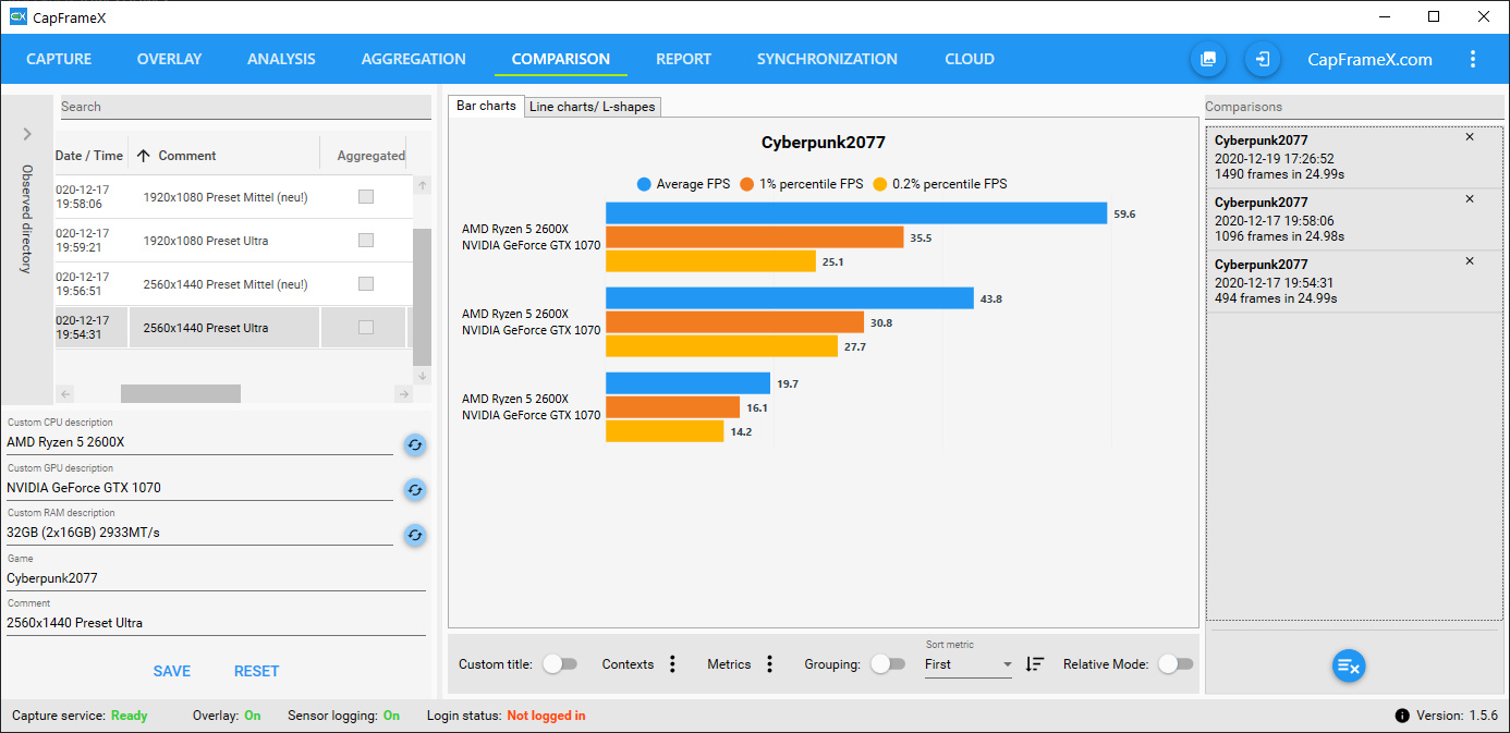 Schreib doch mal @god-necromant an. Er hat Cyberpunk mit einem 2600x + gtx1070 getestet laut thread. Frag doch mal wie er das getestet. Dann machst du das nach und vergleichst die Ergebnisse. Vielleicht kann er dir da etwas weiterhelfen mit nem fast identischen System