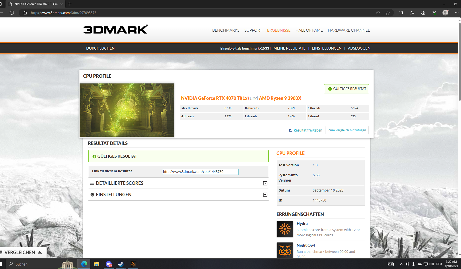 Also von den Tests her sagt es mir sogar, mein System würde GTA 5 (Ultra) Average 175+ FPS machen. Ich komme so auf 100. Und RDR2 soll anscheinend auf Ultra 230+ Average laufen. Was ich stark bezweifle. Ich hoffe die Bilder sagen was aus, wenn nicht: benchmark-1533 ist das getestete Profil (Konto, Benutzer).Willi-Fi schrieb:Lass halt mal den 3Dmark laufen. Timespy und Firestrike geben die Punkte bzw. einen Vergleichslink und dann kann man sagen was stimmt und was nicht.
