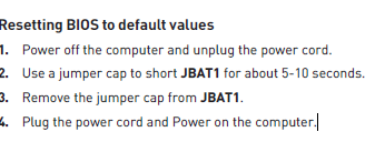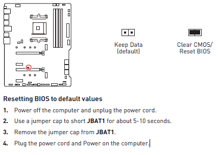 Rechner ausschalten, Stecker vom Netzteil, Jumper 5-10 sec umstecken.