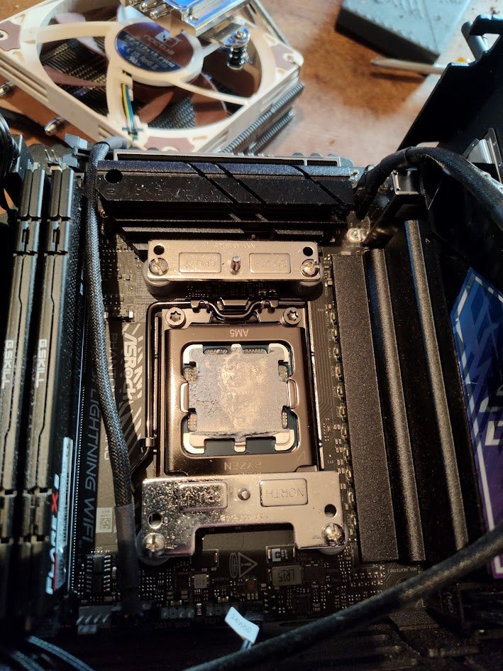 Der ZEN 4/5 Heatspreader hat viel Masse. Ein Lüfter zur Kühlung auf die CPU blasend gerichtet würde wohl selbst ausreichen. Gleich mal selbst testen.