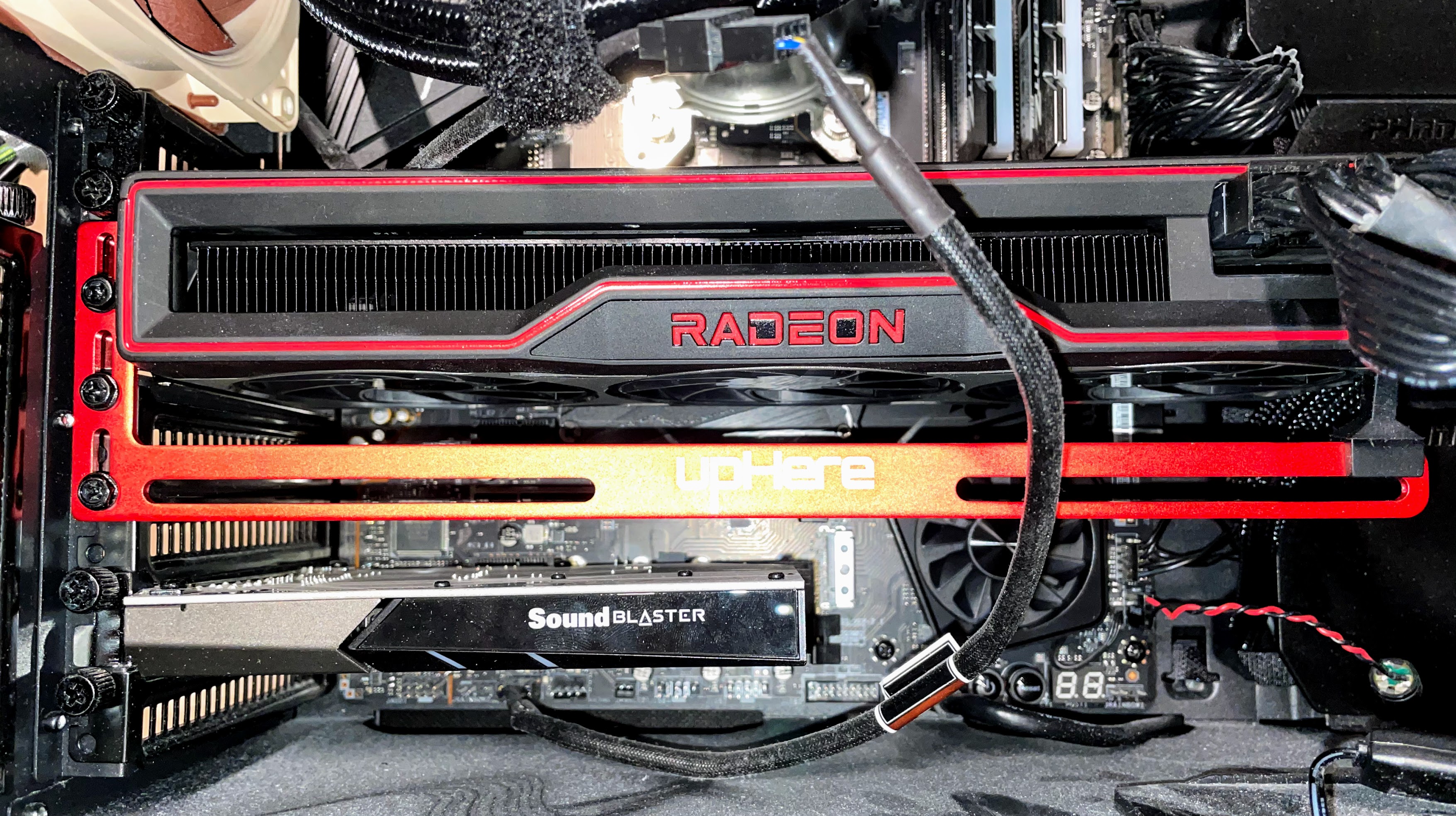 Die Gummifüße könnten etwas strammer auf der Halteschiene anliegen. Durch das Eigengewicht der Grafikkarte bleiben die Gummifüße aber stabil am Platz.