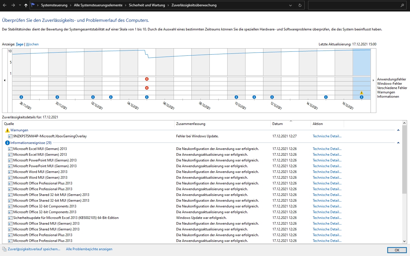 • Windows ist aktuell, auch optionale Updates wurden alle geladen/ installiert