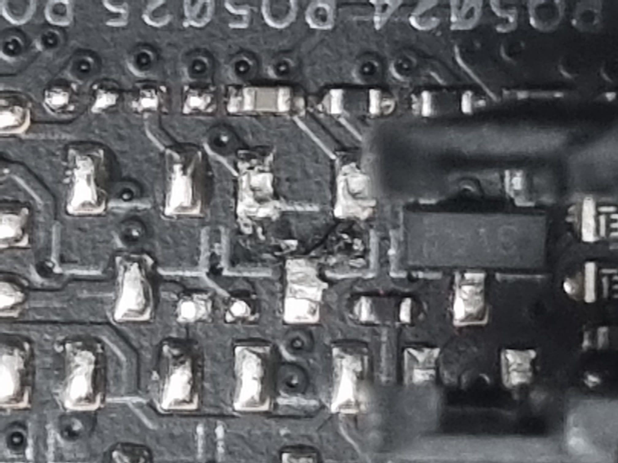 Jedoch ist mir beim Umbau ein dummer Fehler unterlaufen und ein kleines Bauteil unter der Klammer vom PCI-Express Slot verloren gegangen.