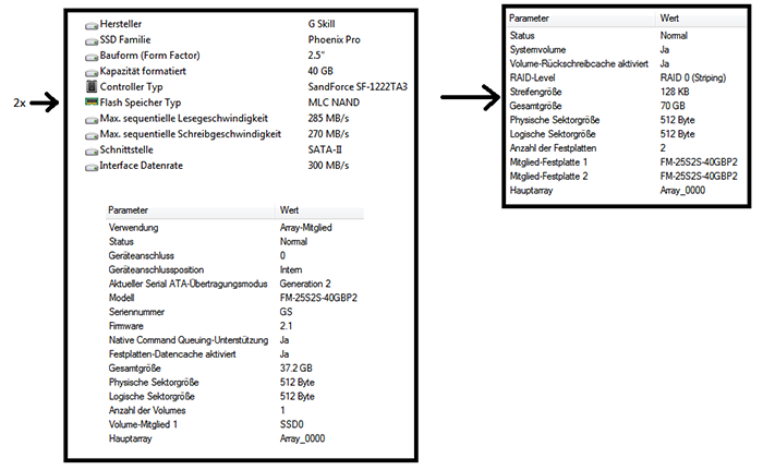 Das mit den 5000 GB Schreibleistung und 576 TB in die NANDs passt schon, das ist die Write Amplification und die bei den alten Indilinx eben sehr hoch, 100 und mehr sind da durchaus keine Seltenheit, wenn die genug Stunden aber Schreibvolumen in der Zeit haben.