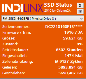 Ach ja, soweit ich es noch im Kopf hatte, hat das Indilinx Tool auch was von durchschnittlich über 9000 Schreibzyklen angezeigt, was ja doch ganz ordentlich ist, wenn man bedenkt, dass immer so ca 10.000 angegeben werden, ist das für mich ein zeichen, dass da gewaltig was falsch läuft, wenn auf der SSD nur das System ist und nur selten verändert wird.
