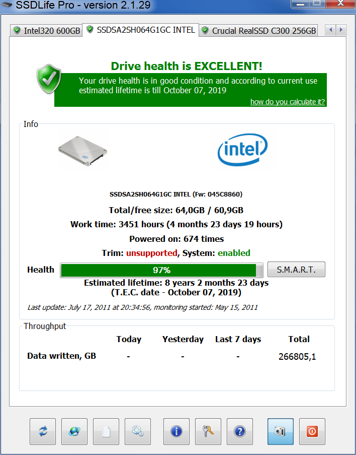 Würde mich aber mal interressieren, wie ich bei der Cosair auslesen kann wie viel ich schon drauf geschrieben habe und wie lange sie schon läuft. Geht das bei den überhaupt ?