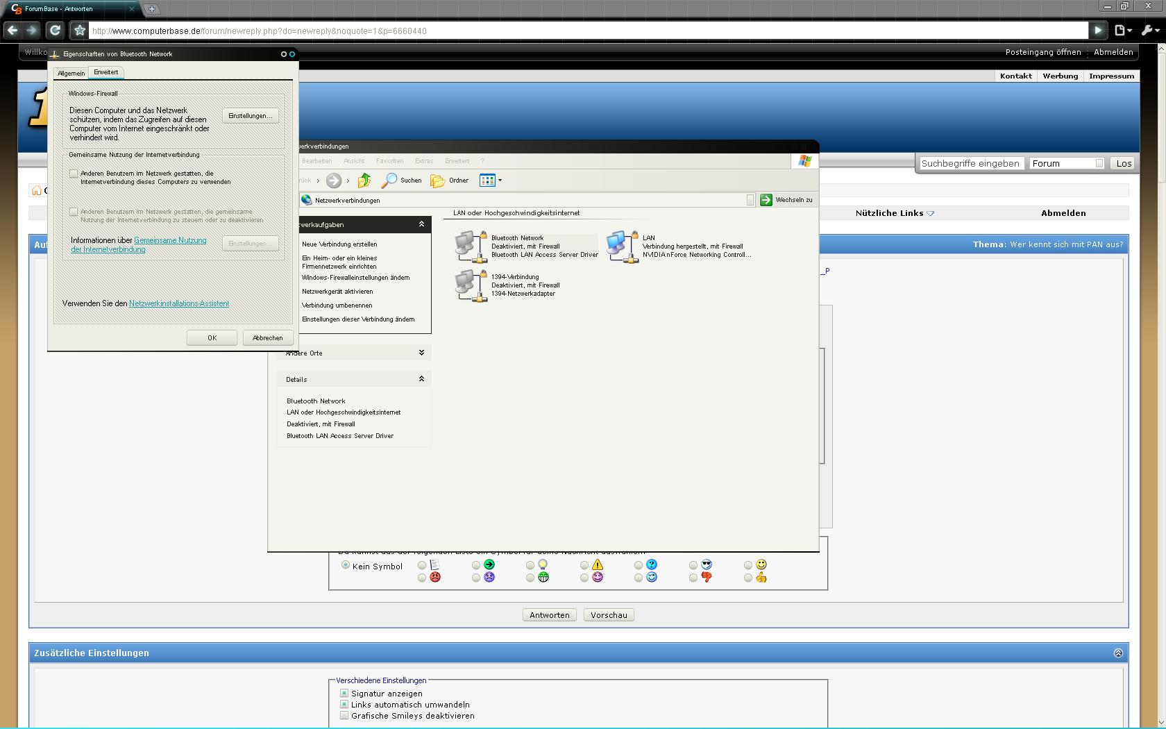 Ganz im Gegenteil ich habe nen erneuten Rückschlag hinnehmen müssen: Ich habe noch einen Rechner hier und den auch mal eingerichtet. Er hat ICS auf dem LAN Adapter (nicht auf dem BT Adapter). BS ist XP Home.