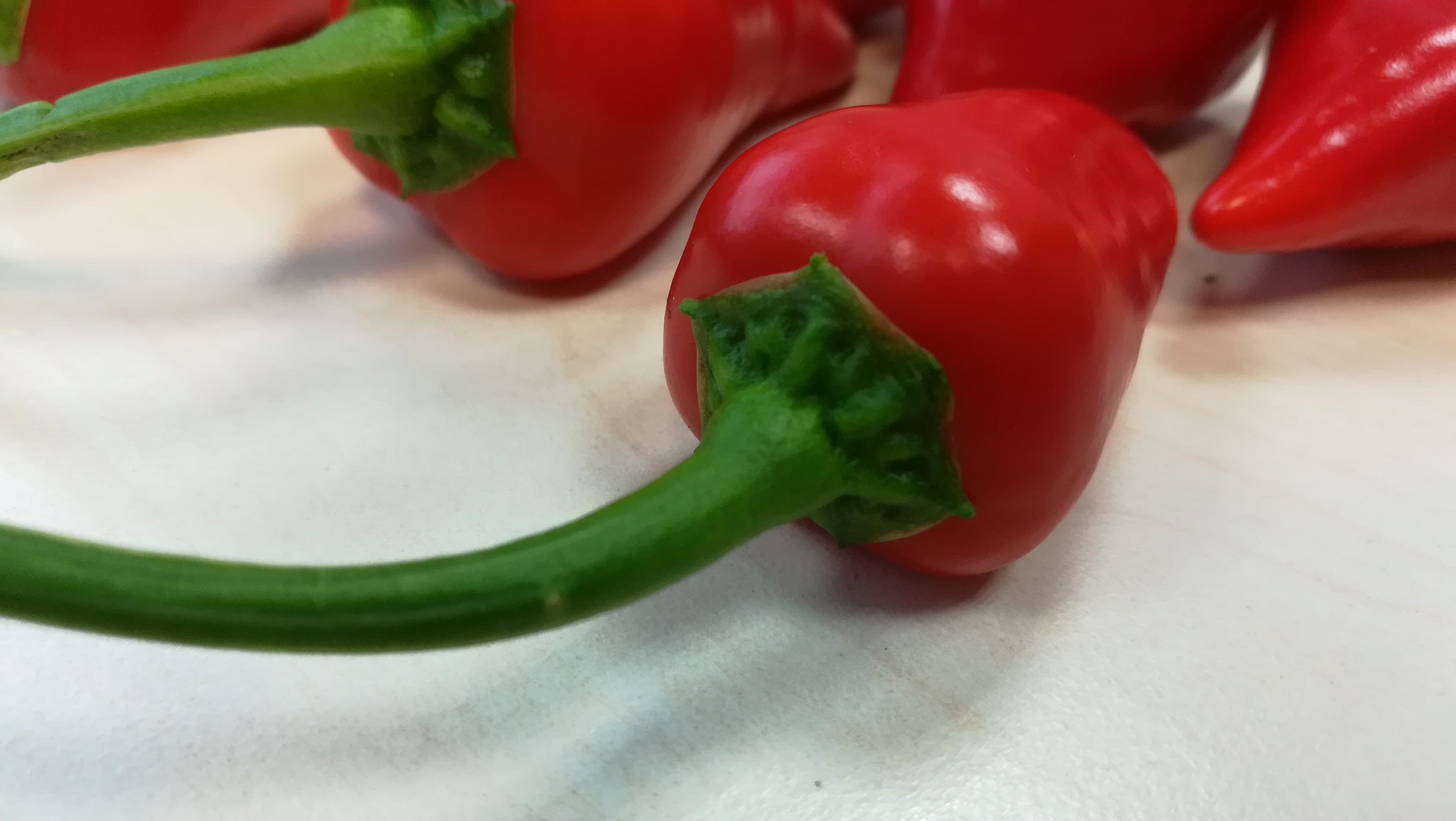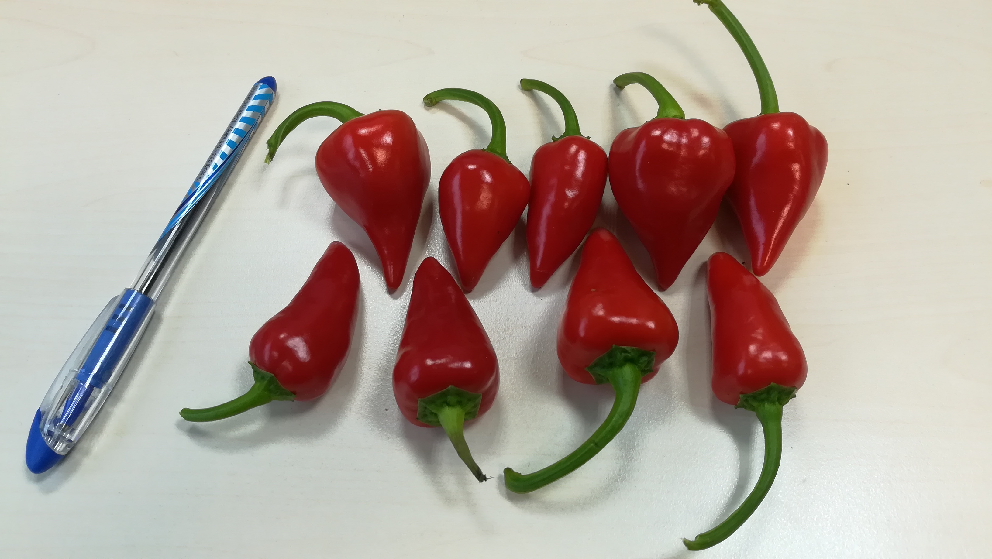 Anbei die Bilder, evtl. kann jemand etwas damit anfangen. Wäre echt neugierig, um was es sich da handelt - eben, weil sie zwar enorm scharf (für mich zu scharf zum pur essen), aber gleichzeitig extrem lecker und süß sind.