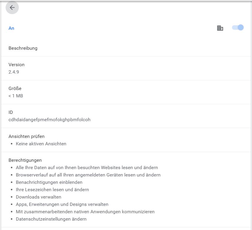 Ich habe Malwarebytes probiert - hat nix gebracht. Ich habe alle Cookies entfernt - hat nix gebracht. Jetzt habe ich mal in die Erweiterungen geschaut, und da irgendwie so ein komisches etwas gefunden, was sich nicht entfernen lässt... Könnte es daran liegen? Und wie werd ich das wieder los?