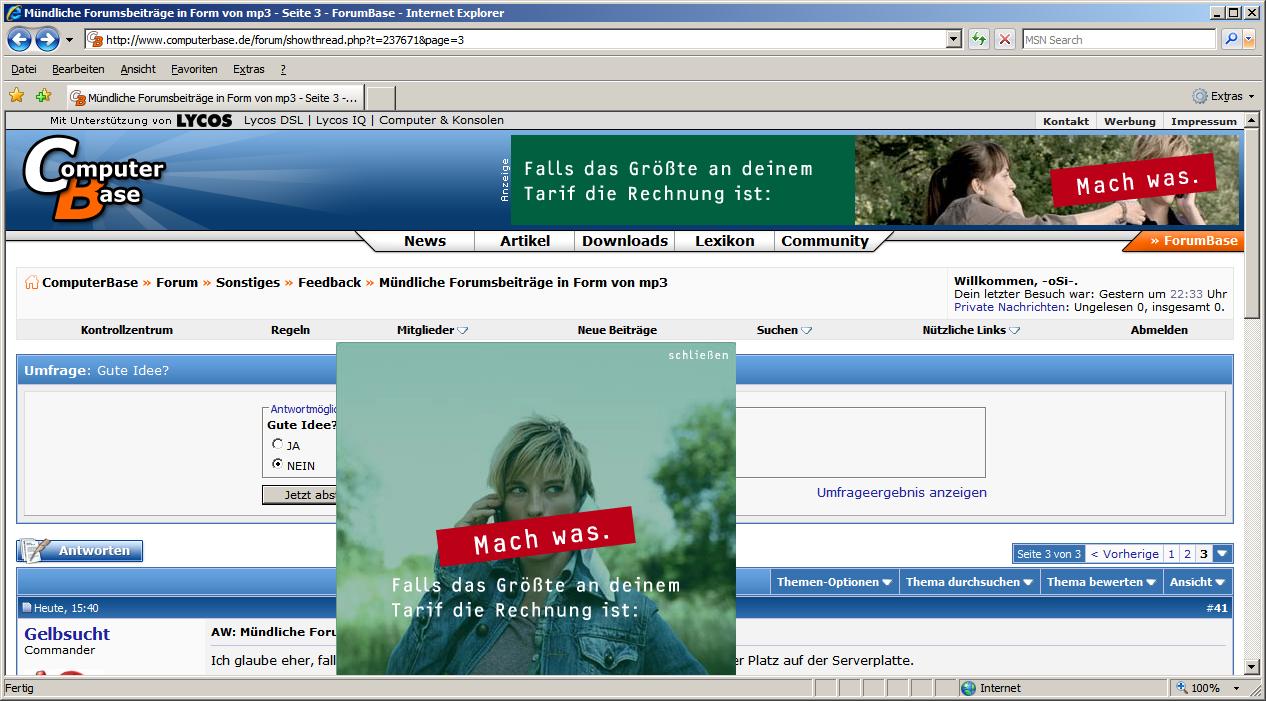 Als erstes hüpfte mir gleich die Ad-Layer-Werbung entgegen, aber am nervigsten ist die Werbung zwischen Ende des Threads und dem Antworten Button.
