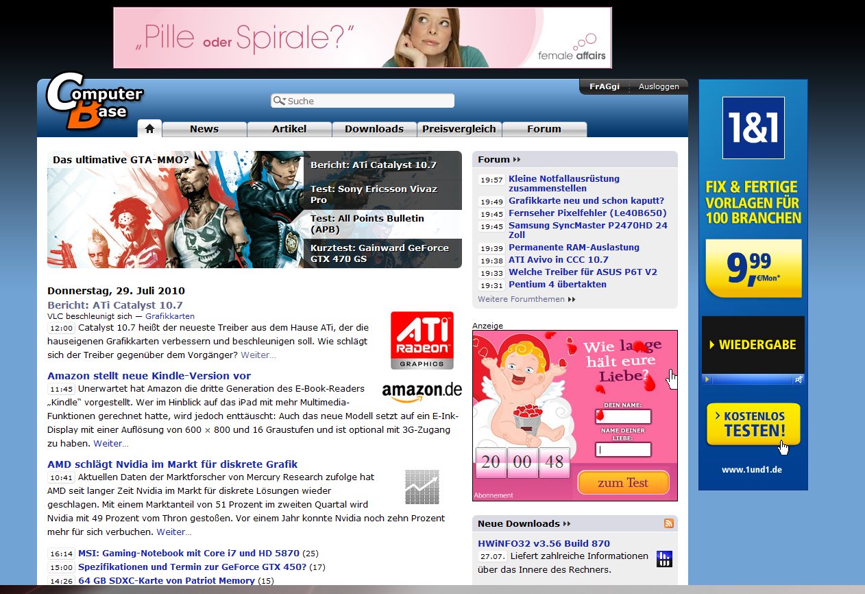 Es ist offensichtlich, dass du und deine meisterliche "Argumentationskunst" bei den Verhandlungen mit den Werbepartner gefehlt hat. Denn, wenn du dabei wärst, hättest du den Werbepartnern das mit den tollen Mausrädern verklickern können und auch dennen erklärt, dass die CB-User alle Scrollmeister sind und die Werbung daher nicht bei genau 620-Pixel in der Länge aufzuhören braucht. Wir erinnern uns wieder an den Screenshot, und die blöden Werbeleute, die es einfach nicht raffen, dass die User so gerne scrollen und man daher die Werbung doch weiter runter auch platzieren kann, anstatt die noch weiter in die Breite aufzubrausen....