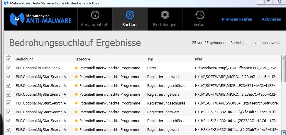 Bei Bowsererweiterungen und in der Liste installierter Programme kann ich keine neuen Einträge finden. Im Taskmanager kann ich auch alle Prozesse indentifizieren (denk ich).