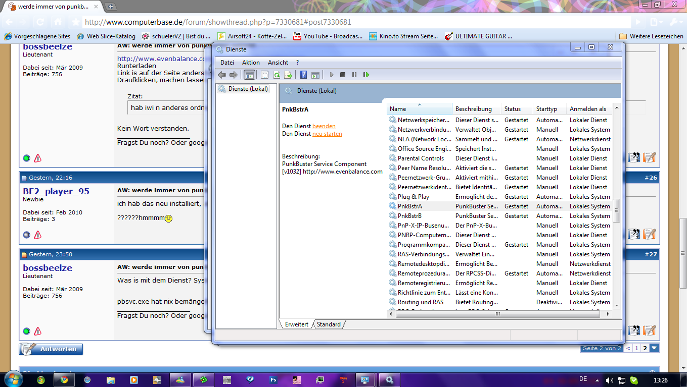 Was is mit dem Dienst? Systemsteuerung->Verwaltung->Dienste