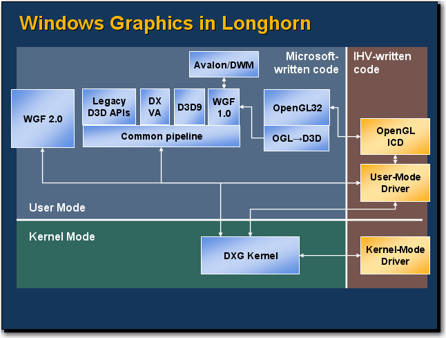 Das passiert aber nur wenn du die MS implementation von Open GL nimmst. Mittlerweile gibt es nämlich auch ICD-Treiber, die diesen Umweg über die D3D-Layer vermeiden. Von daher fällt auch das weg, wenn du den Treiber installierst.