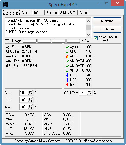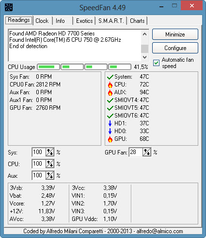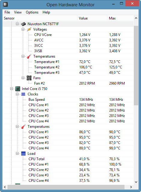 Anbei ein paar Screenshots aus SpeedFan und Open Hardware.