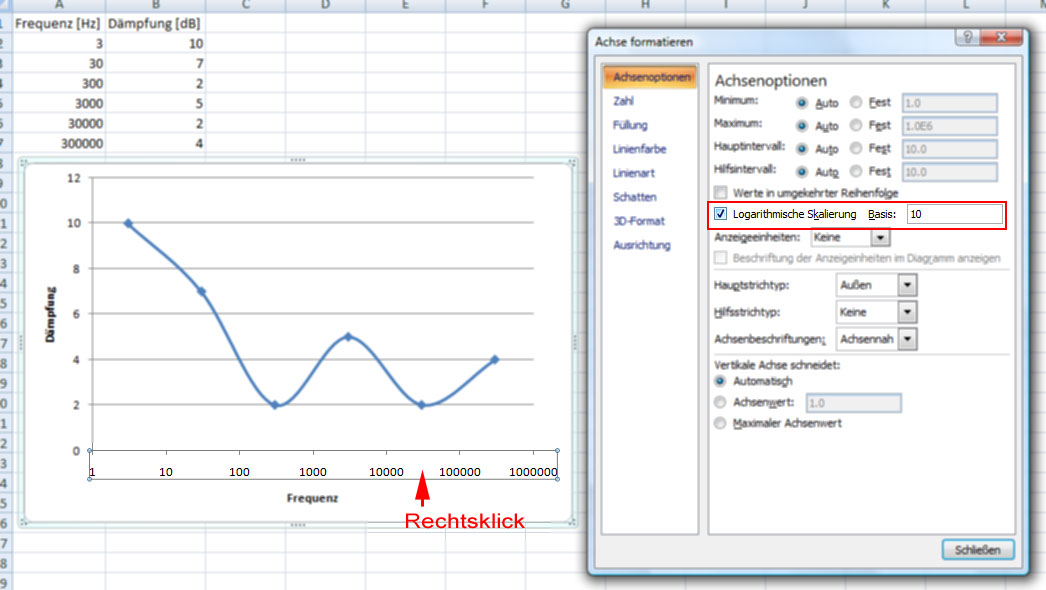 2. Wie trage ich logarithmisch, einzelne Werte auf ?
