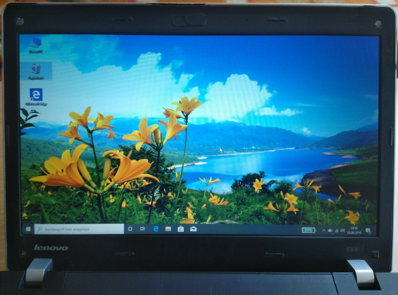 Bildschirm hat einen Wackelkontakt, flackert manchmal bei bestimmten Winkeln. Display-Kabel wahrscheinlich beschädigt. Ich würde ein neues Display-Kabel zum Einbauen mitgeben.