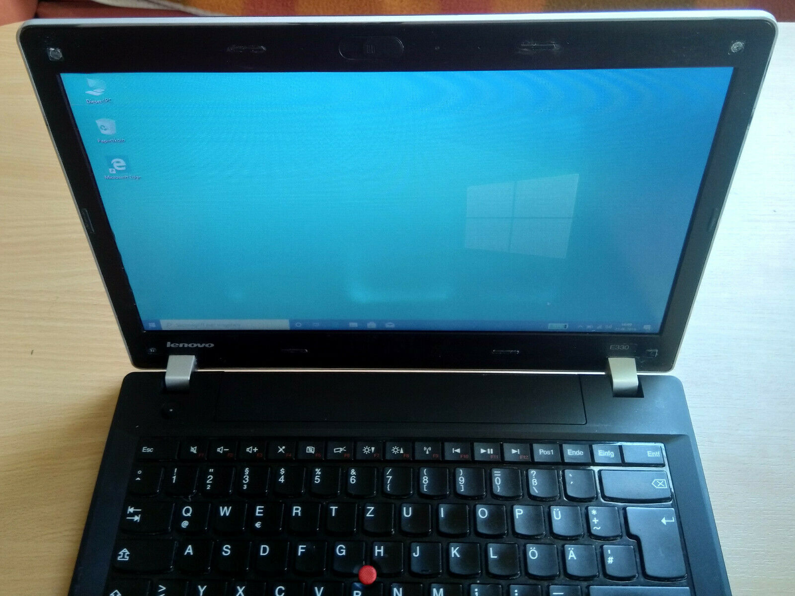 äußerer Zustand Nichtraucherhaushalt, Abnutzungsspuren an Tastatur und Touchpad, Leichte Abdrücke der Tastatur auf dem Bildschirm (sichtbar nur im ausgeschalteten Zustand) Bei einem scharfen Winkel ist ein Lichtfleck in der Mitte des Bildschirmes zu sehen (siehe Bild)