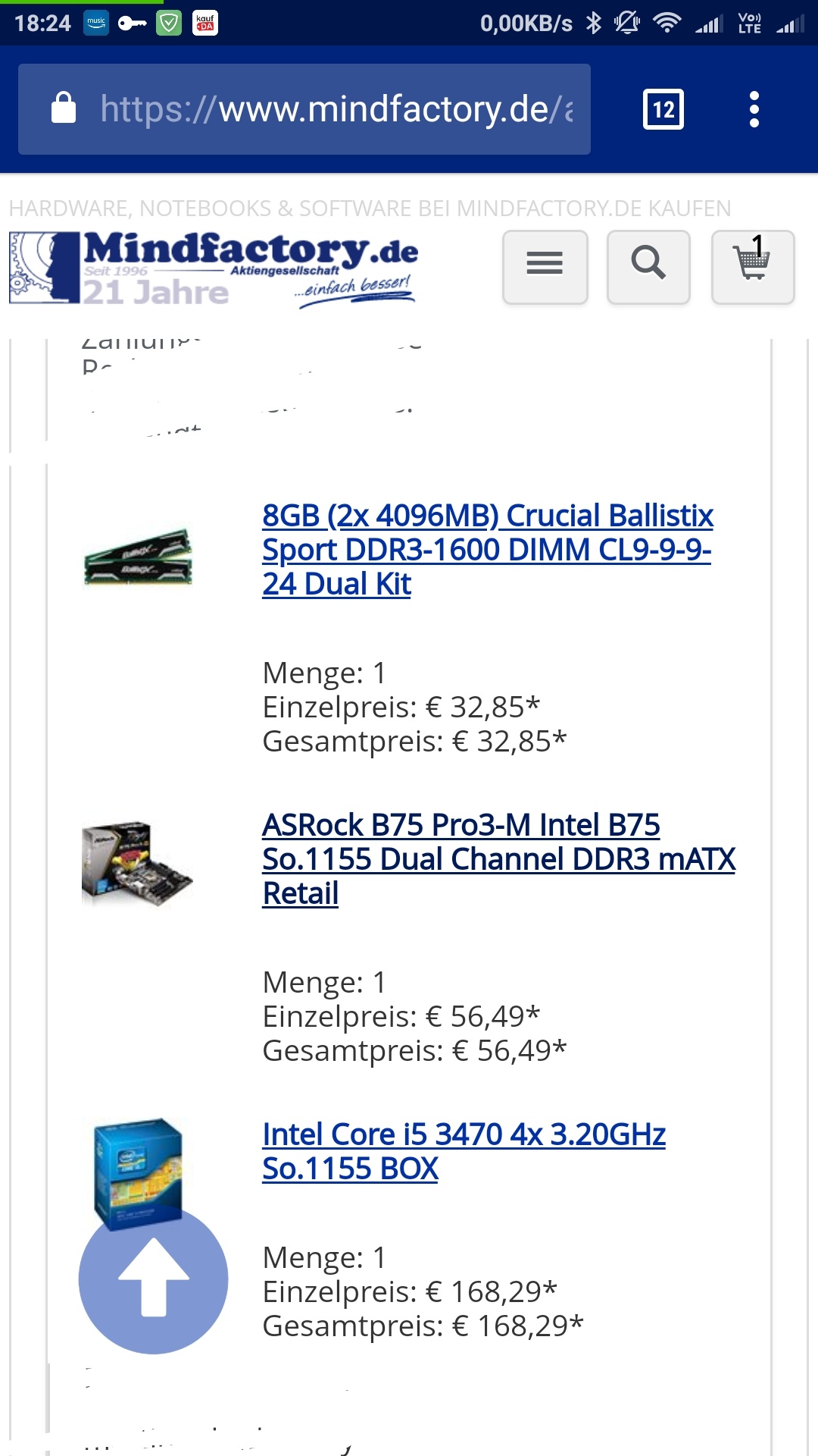 RAM: 2* 8GB DDR4 von Crucial --> ca. 90-100€