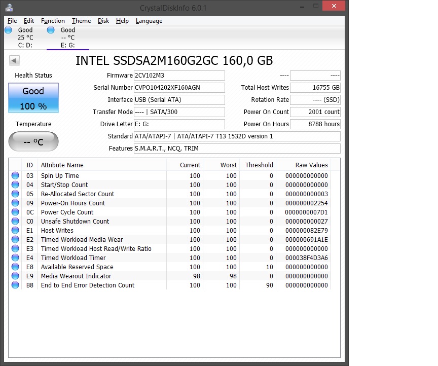 Ansonsten würde ich sagen die SSD ~ 35 € (eben weil schon deffekte Sektoren da sind und schon 16 TB drauf geschrieben wurden. Die HDD ~ 44 € (75% vom NP, da noch Garantie draf ist und die HDD gut aussieht).