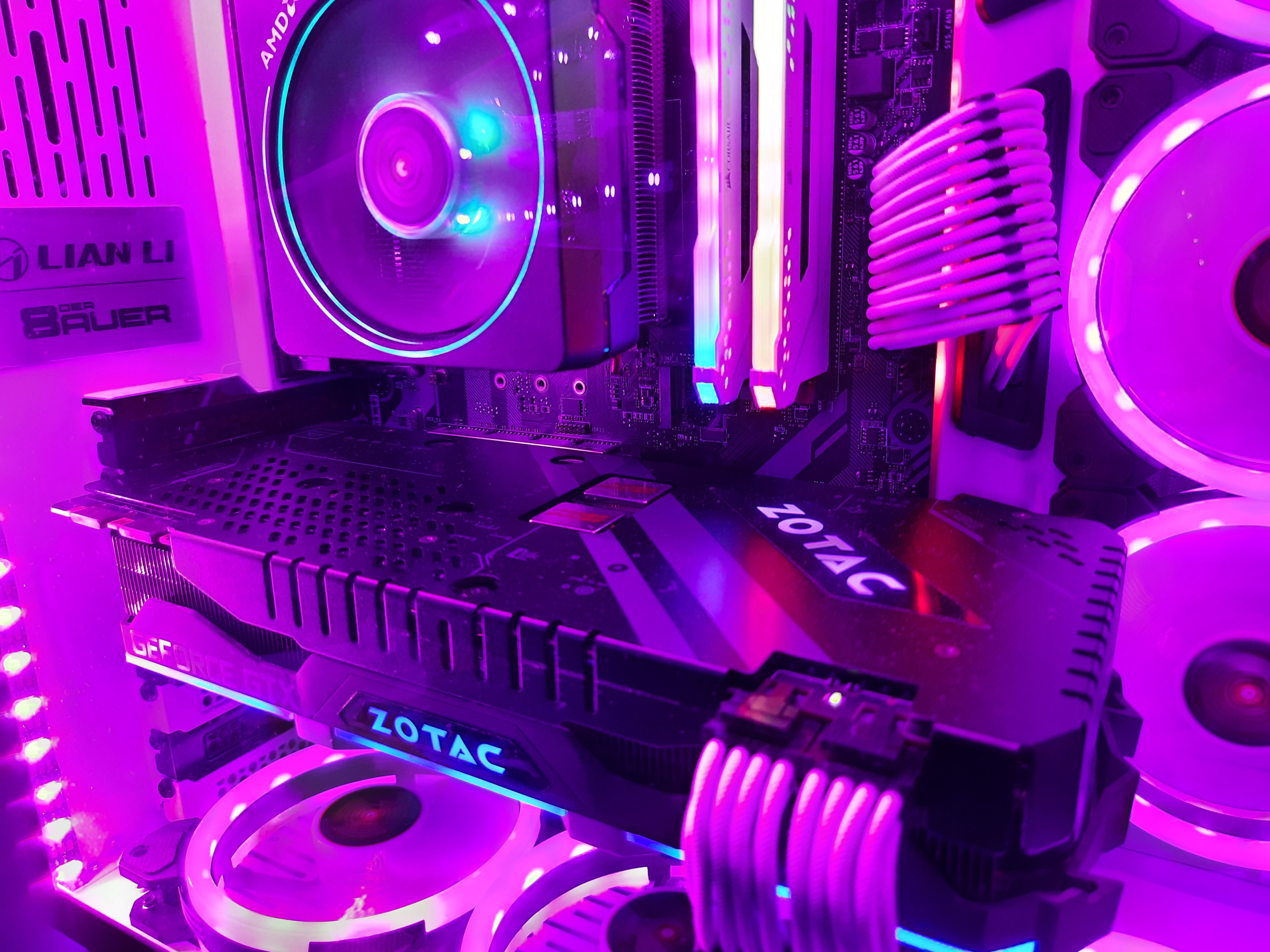 Grafikkarte ist ein Asus Vega 64 Strix OC, diese ist auf Wasser umgebaut mit einem EK Block - D5 Next Pumpe mit Ausgleichbehälter - Alphacool 280mm Radi mit 2 Noctua Lüftern.