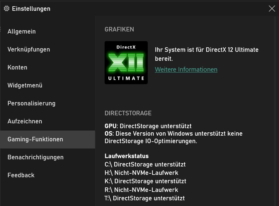 Was mir noch aufgefallen ist, über die DirectStorage Info der Xbox GameBar: