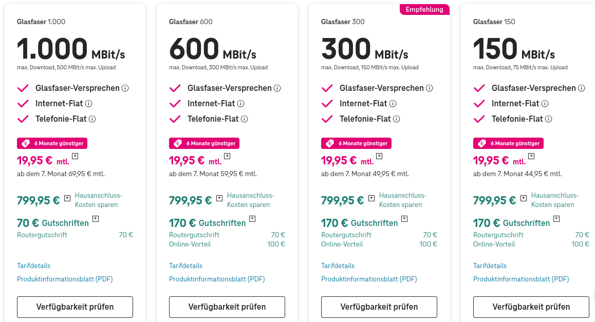 Der Titel sagt es schon: Seit Anfang Juli hat die Telekom bekanntlich ihre Tarife bei Glasfaseranschlüssen verbessert.