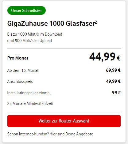 Ist bei uns im Vodafone eigenen Gebiet preislich genau so.Holzkopf schrieb:In einem von Vodafone Betriebenen geförderten Netz.