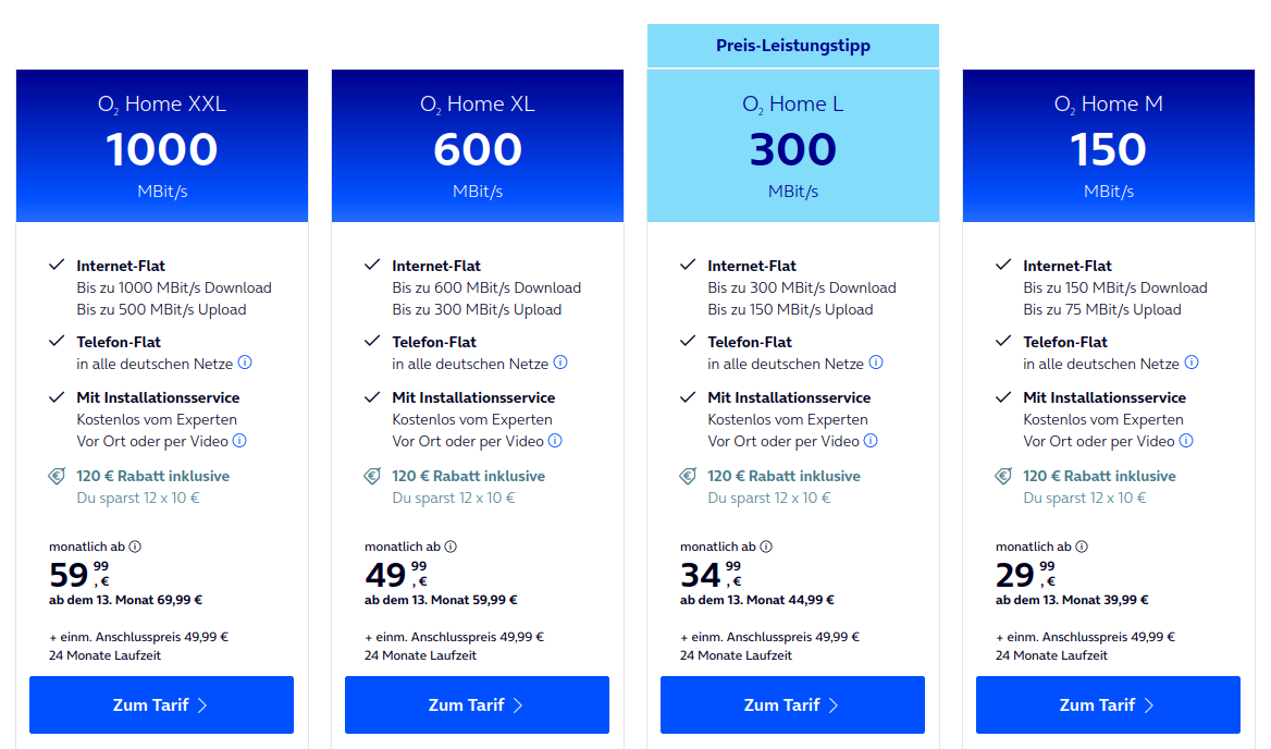 Das ist ja aber nichts neues mehr.santander schrieb:O2 hat nun seit 20.11.2024 übrigens gleichgezogen mit der Tarifstruktur der Telekom (150-300-600-1000):