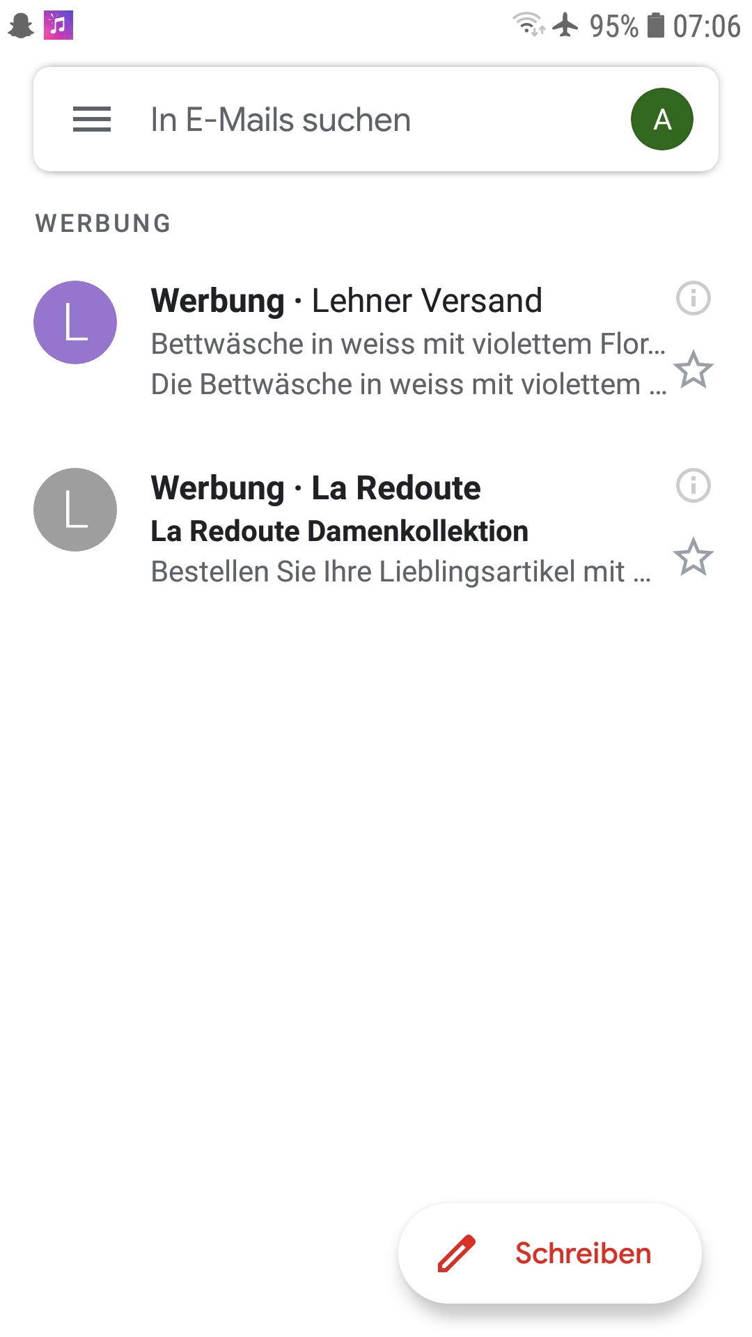 Meine Schwester hat ein S7 und ich ein S9. Wenn ich auf GMAIL gehe und z.B. auf "Werbung" klicke werden mir die Werbungen angezeigt aber auch die Logos des Werbebetreibers (siehe Bild) bei meiner Schwester werden aber nur die normalen Logos bzw. der Anfangsbuchstabe der Werbung angezeigt (siehe Bild).