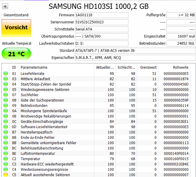 Gut das ich Cristal Disk mal auf meinem PC gestartet habe: