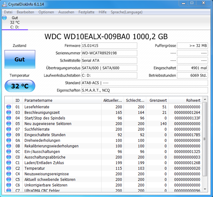 Danke für eure Antworten soweit. Was genau kann ich aus diesen Werten bei CDI denn rauslesen? Ultra-DMA Fehler wäre der aktuelle Wert 200 und der Grenzwert 0? Bedeutet das, dass dieser Wert um 200 zu hoch ist? Aber dann sind doch auch alle anderen Werte über den Grenzwerten?