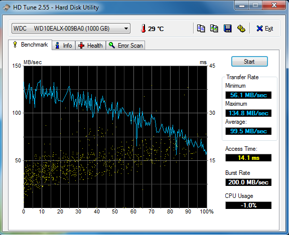 meine oben genannte Festplatte (Western Digital WD10EALX-009BA0 Caviar Blue 1 TB) fällt leider nur durch schlechte Zugriffszeiten und eine hohe Lautstärke auf.