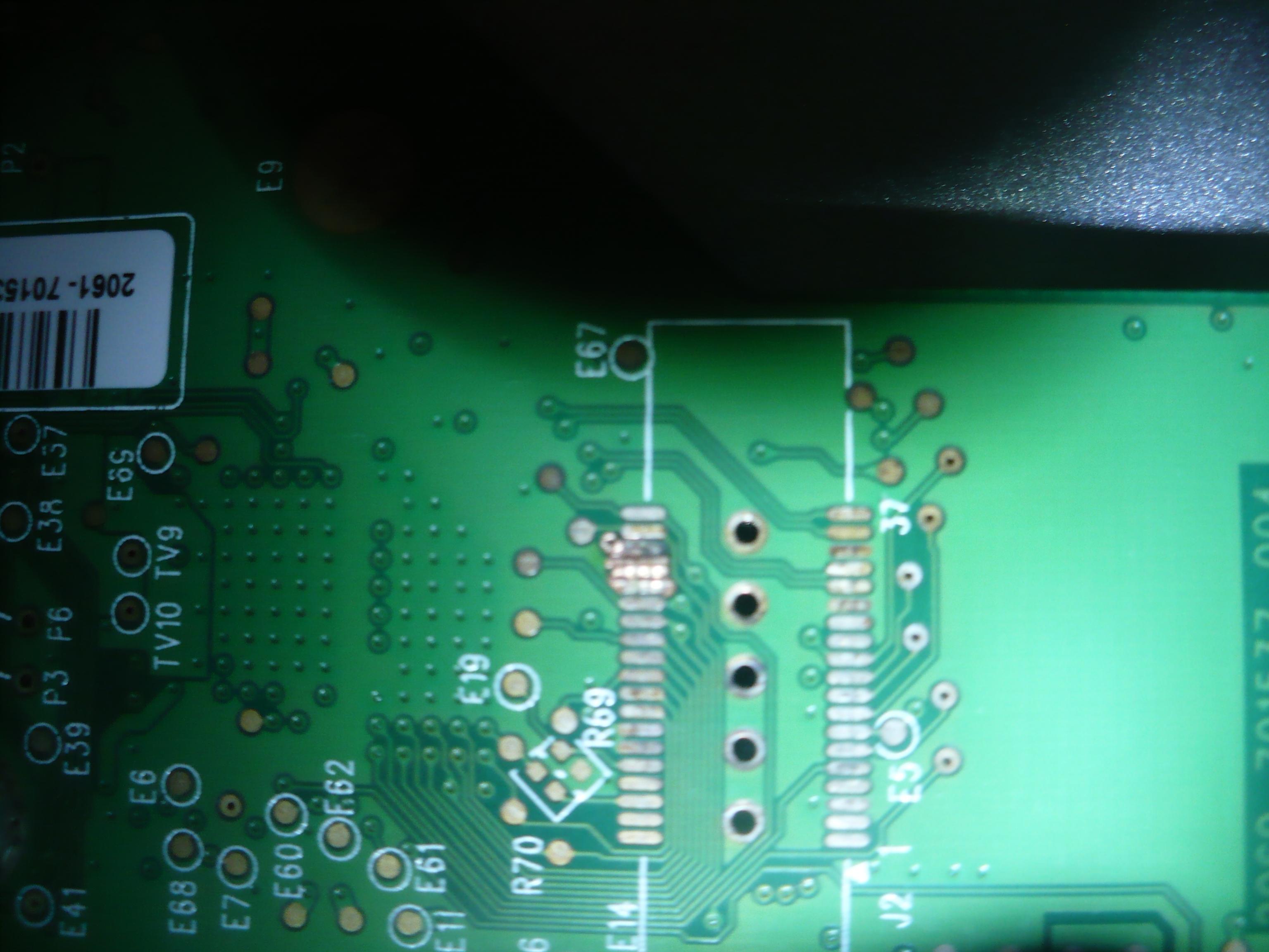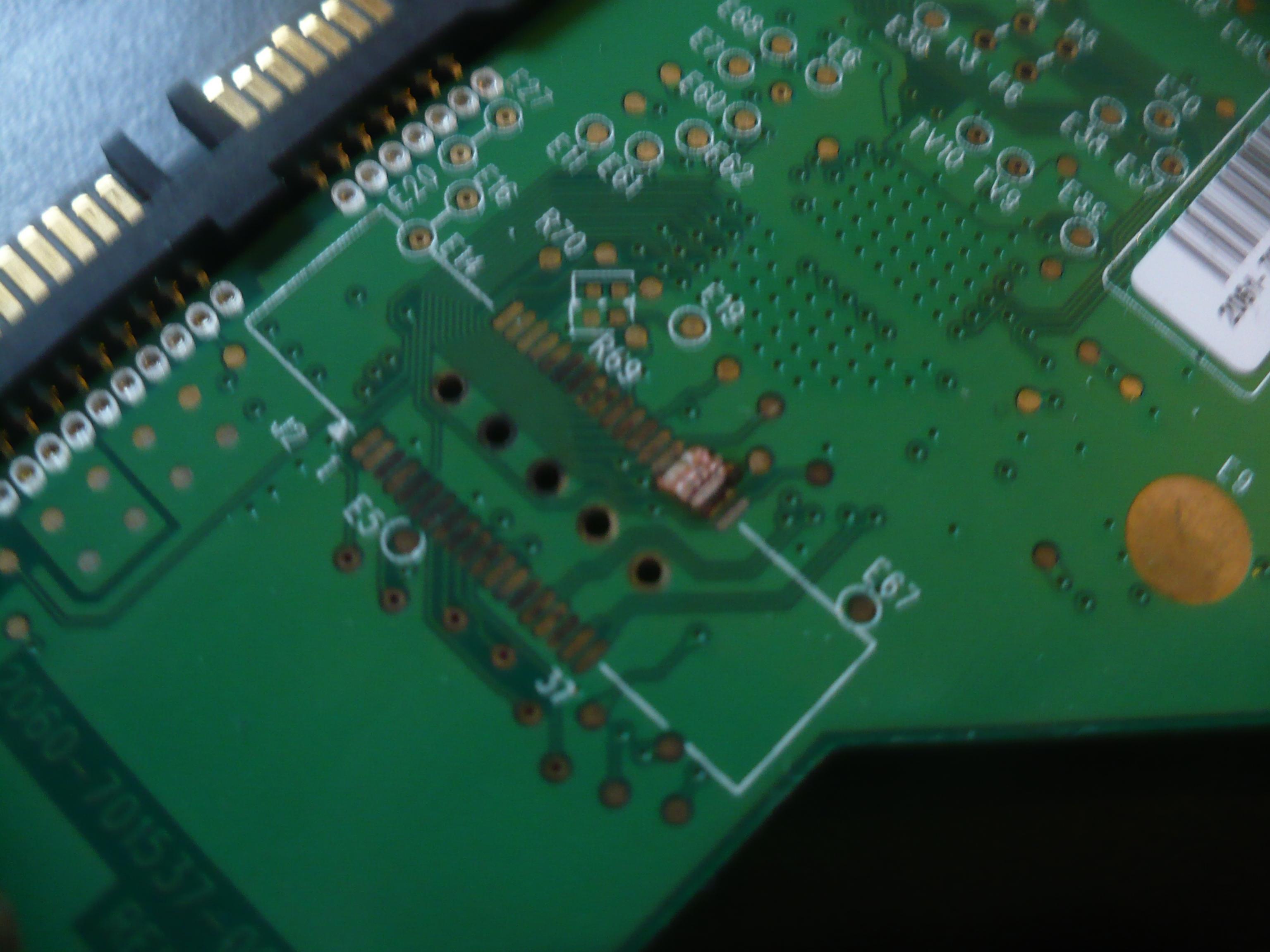 Die Kontakte auf der Rückseite (mit dem Loch zwischen den 2 Reihen) scheinen nur verrostet zu sein. Dort hat die Platine auch Kontakt zur Festplatte.