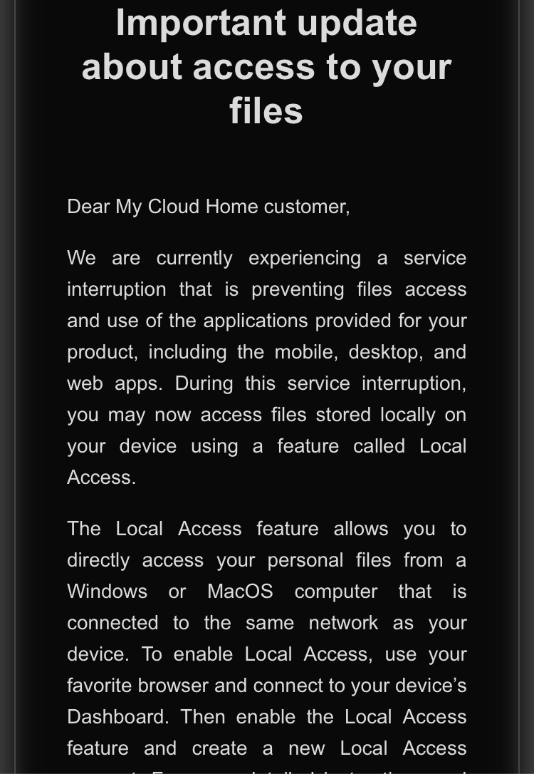 Das ist ein NAS, was dank WD eine Online Funktionalität hat. Mein NAS funktioniert immer noch wunderbar. Ich kann jetzt lediglich nicht mehr online über den Dienst auf das NAS zugreifen. Trotzdem sind die Daten noch da und lokal von allen Systemen abrufbar.