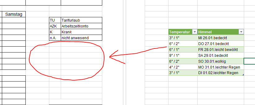 Ich habe die Wetter Tabelle auch schon so weit gekürzt wie es mir möglich war. Da wo der rote kreis ist sollen